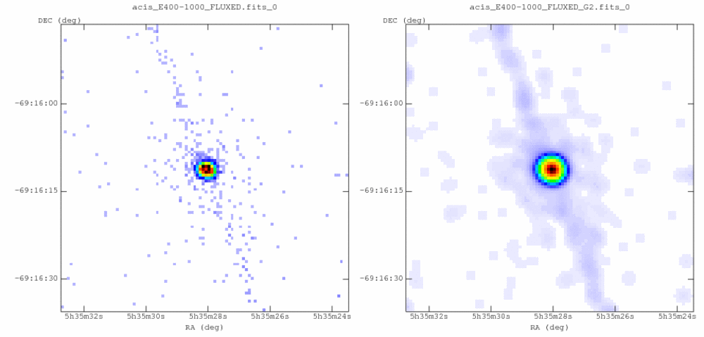 Left: raw image, binned by, 1 x 1, pixel(s)Right: gaussian smoothed version of above (sigma = 2 pixel [in binned image])Click left mouse button on hyperlink below to download file